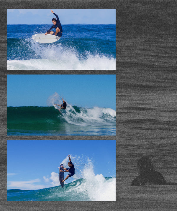 From there, we jumped in the cars and made our way to the holiday house we rented at Boomerang Beach. The next day brought blue skies, clean conditions, but tiny waves. Treachery was the only real option, so we set up for the day with a quiver of massive lord swords, plenty of snacks, and the jetski on hand for a bit of speed assist. No one really got any clips, but a local dolphin stole the show and ended up making the middle section of the video edit.