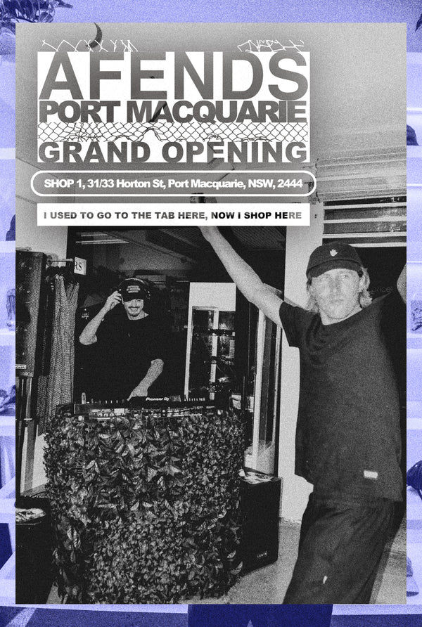 AFENDS Port Macquarie! It was incredible to see such a great mix of locals and holiday visitors stop by. The first 50 people through the door got a free limited edition tee, and DJ Gold Trip kept the energy going with some great tunes. We enjoyed Fizz, Stone & Wood, and Sand Boy while checking out the new fit-out and our latest drop. The surf team also joined us to celebrate. It was a pretty memorable night.