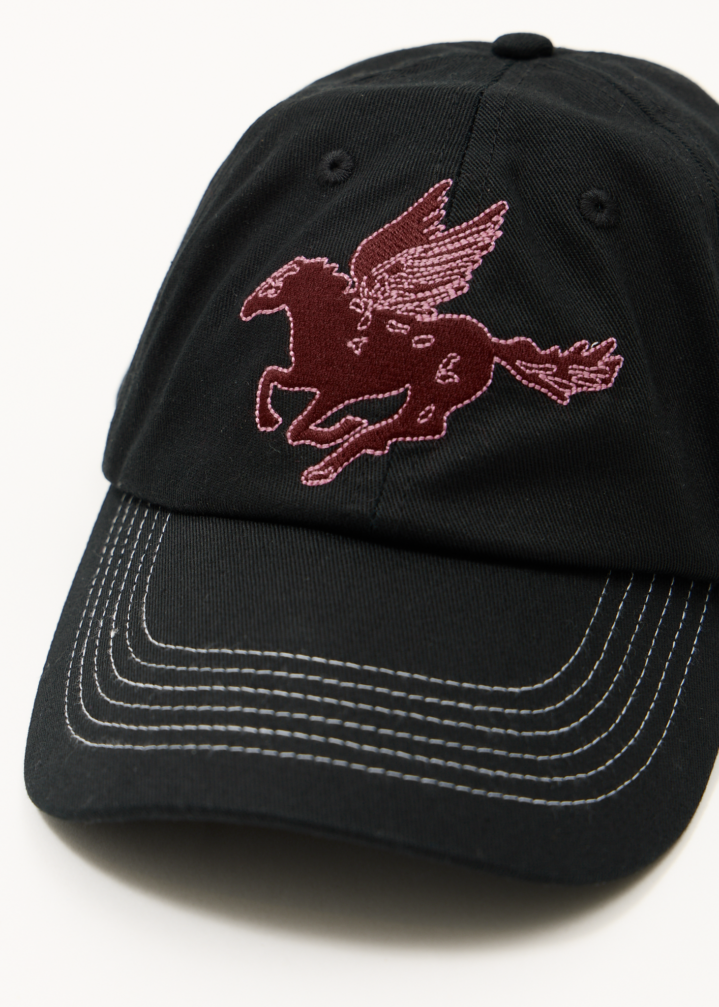 The 'Kettle Cap' is designed with a six-panel structure and an adjustable snapback for a custom fit. Featuring embroidered artwork and contrast stitching. Made from 100% recycled cotton twill.