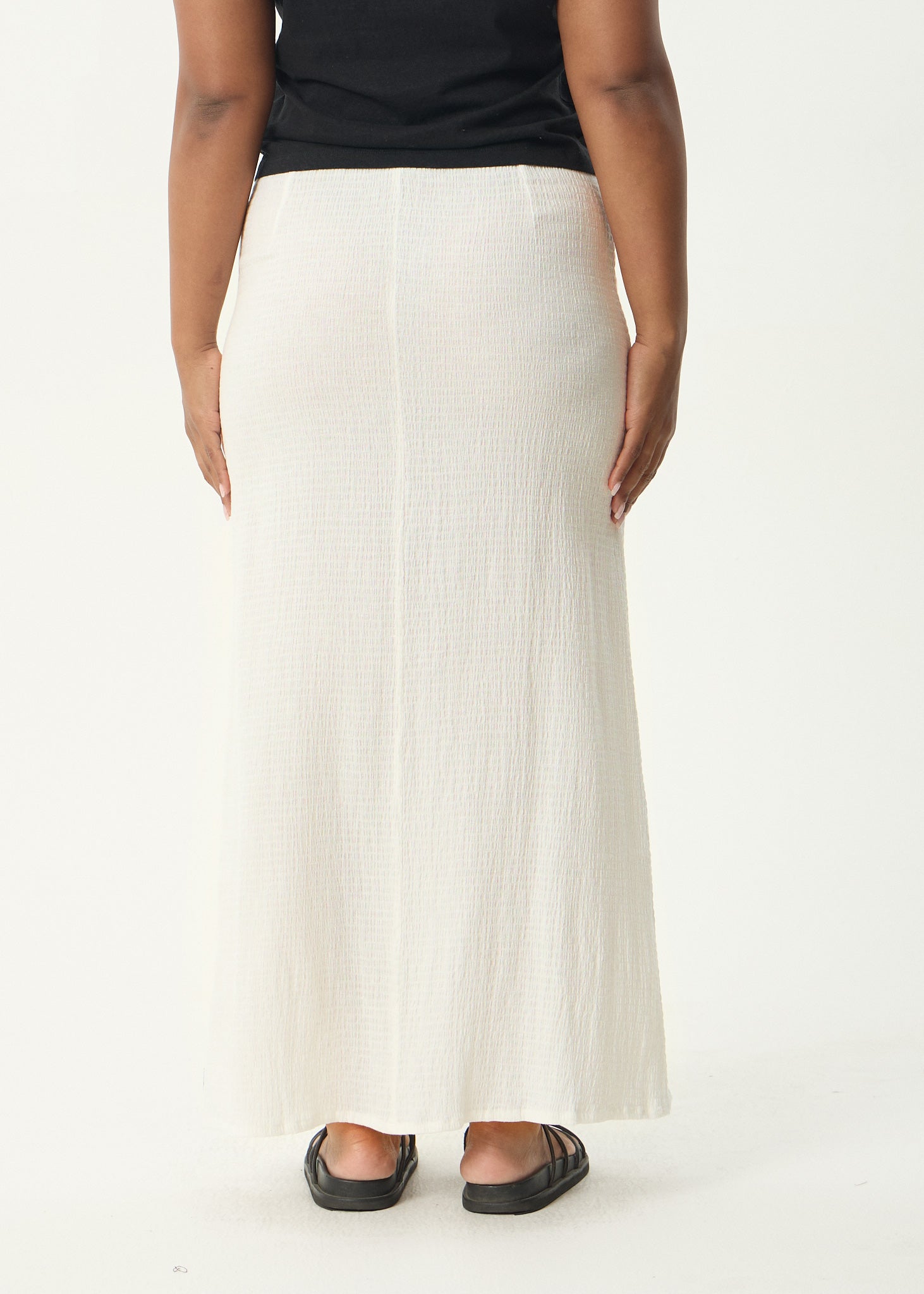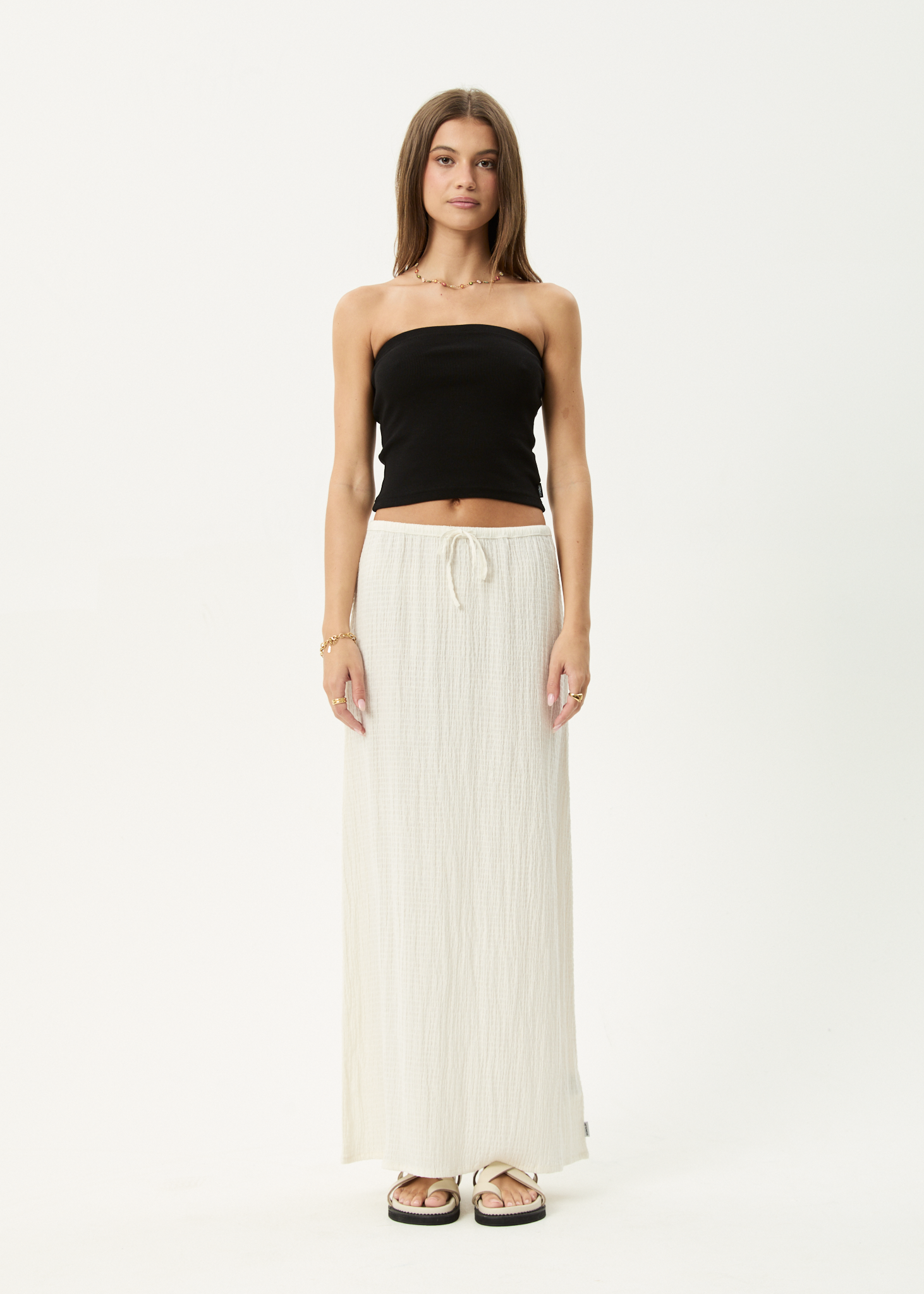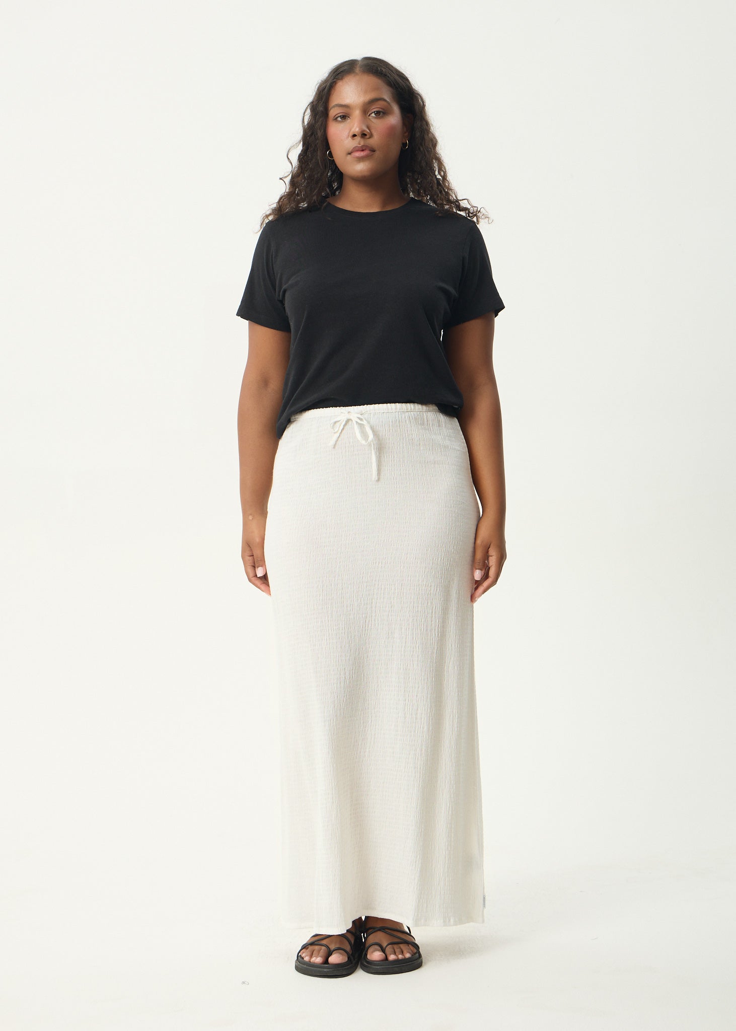 Crafted in our signature hemp and tencel seersucker blend, this off white maxi skirt is lightweight, breathable and textured for subtle dimension. The elastic waistband with drawcord offers an adjustable fit, while the flowing silhouette makes it drape effortlessly for a clean, relaxed silhouette.