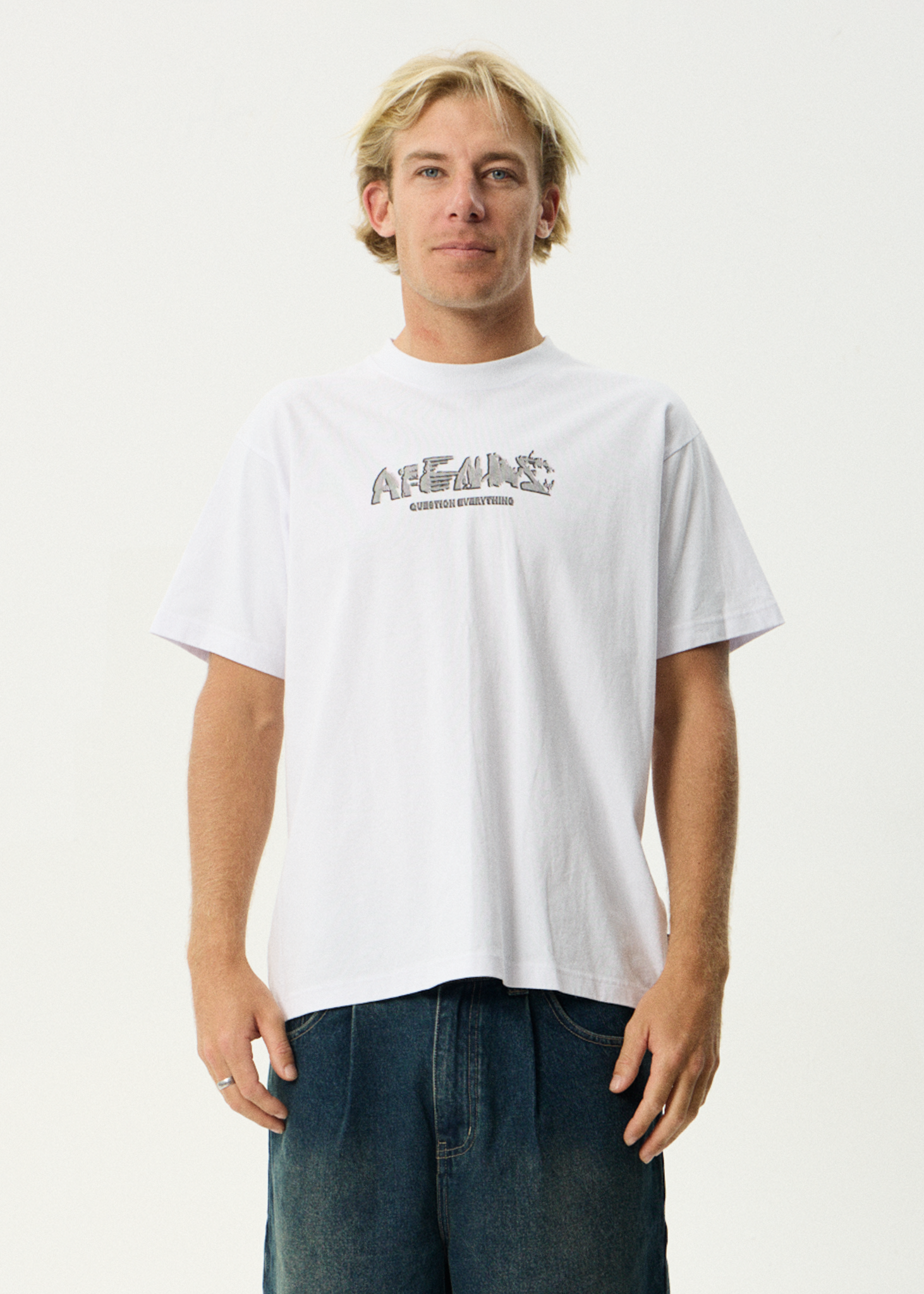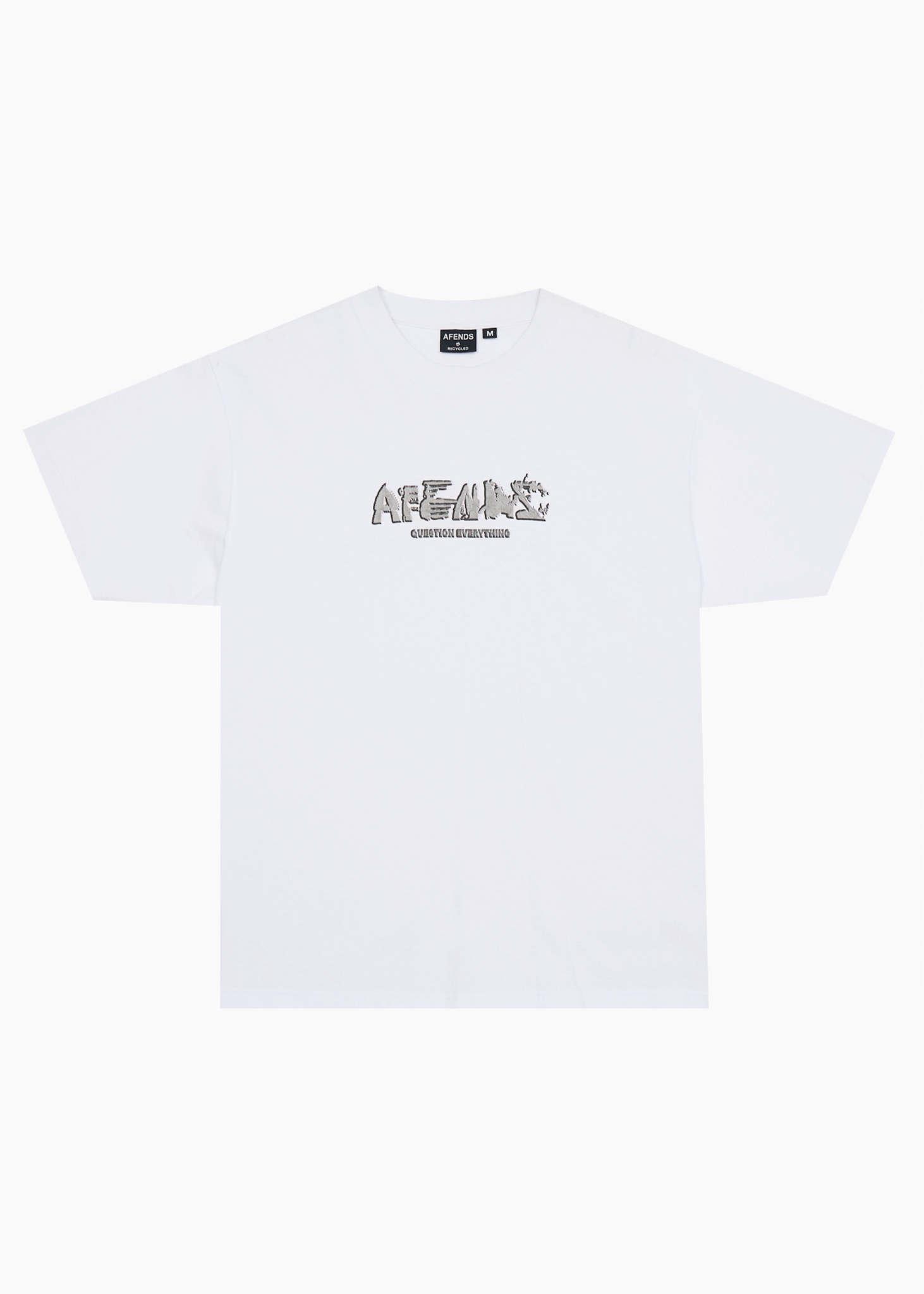 Mens boxy t-shirtSlightly cropped wider fitRibbed crew necklineHeavyweight recycled cotton blend with a dry hand feelCrackled screen printed artworkSize up for an oversized fit