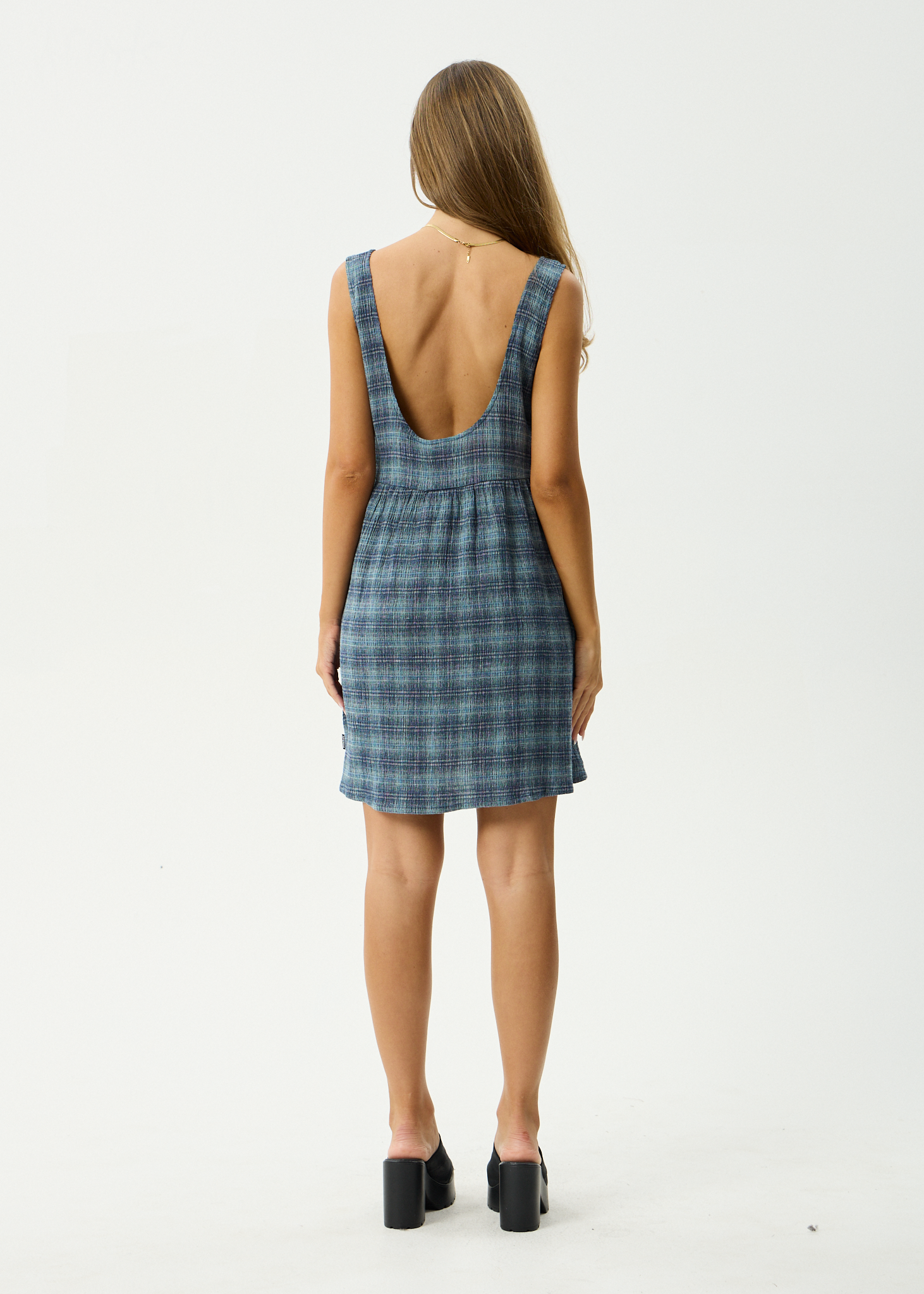 Our signature lightweight, breathable hemp tencel seersucker returns in the beloved navy check as part of our ongoing collection of refined shapes. This mini dress is designed with a relaxed fit, flattering scooped neck and back and self fabric in seam pockets to store your essentials.