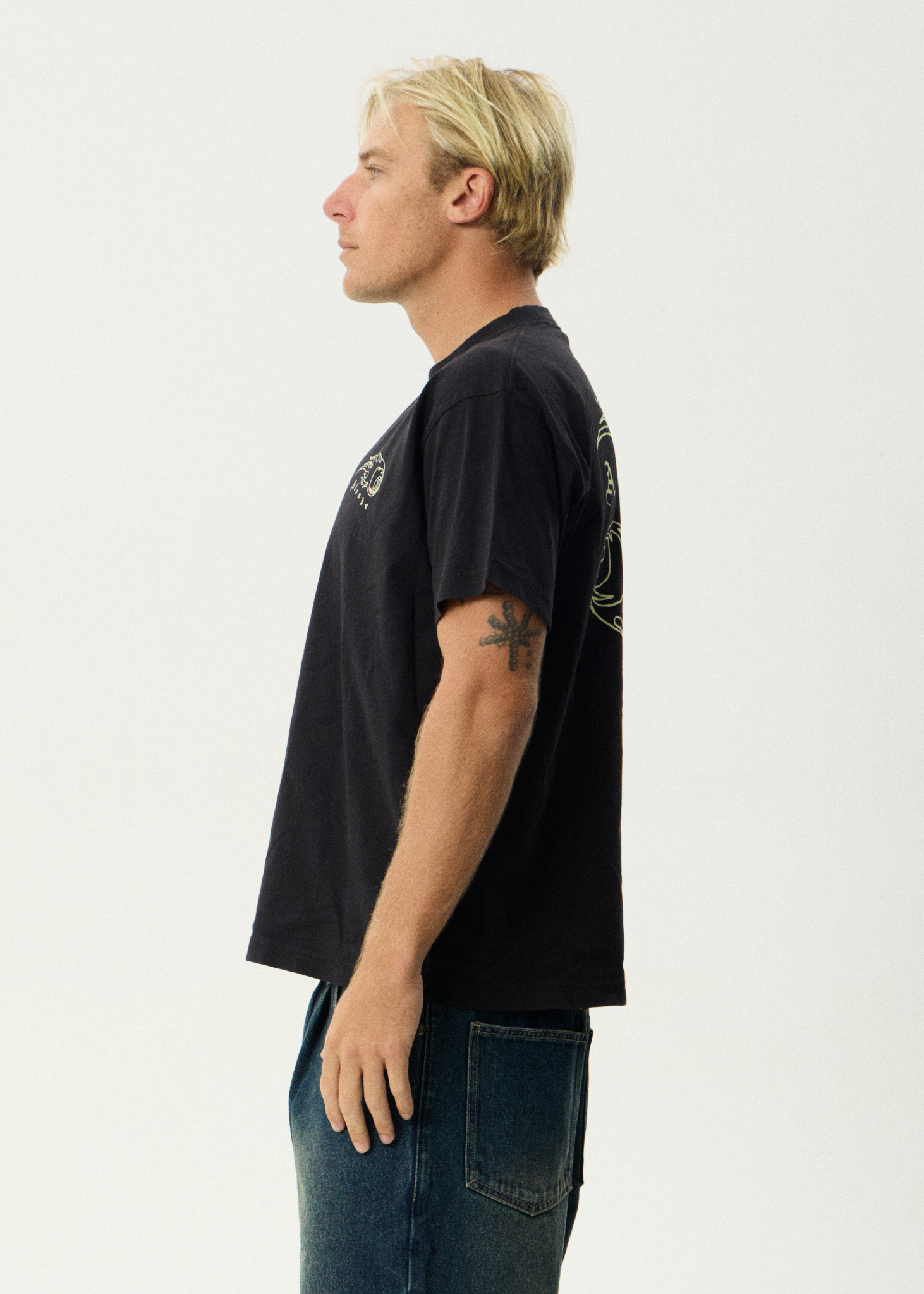 Designed with a slightly cropped, wider fit and a ribbed crew neckline, this tee has a heavyweight, dry hand feel and a cracked plastisol print for a worn in finish. Developed with cracked plastisol print and embroidered artwork on the front and back.