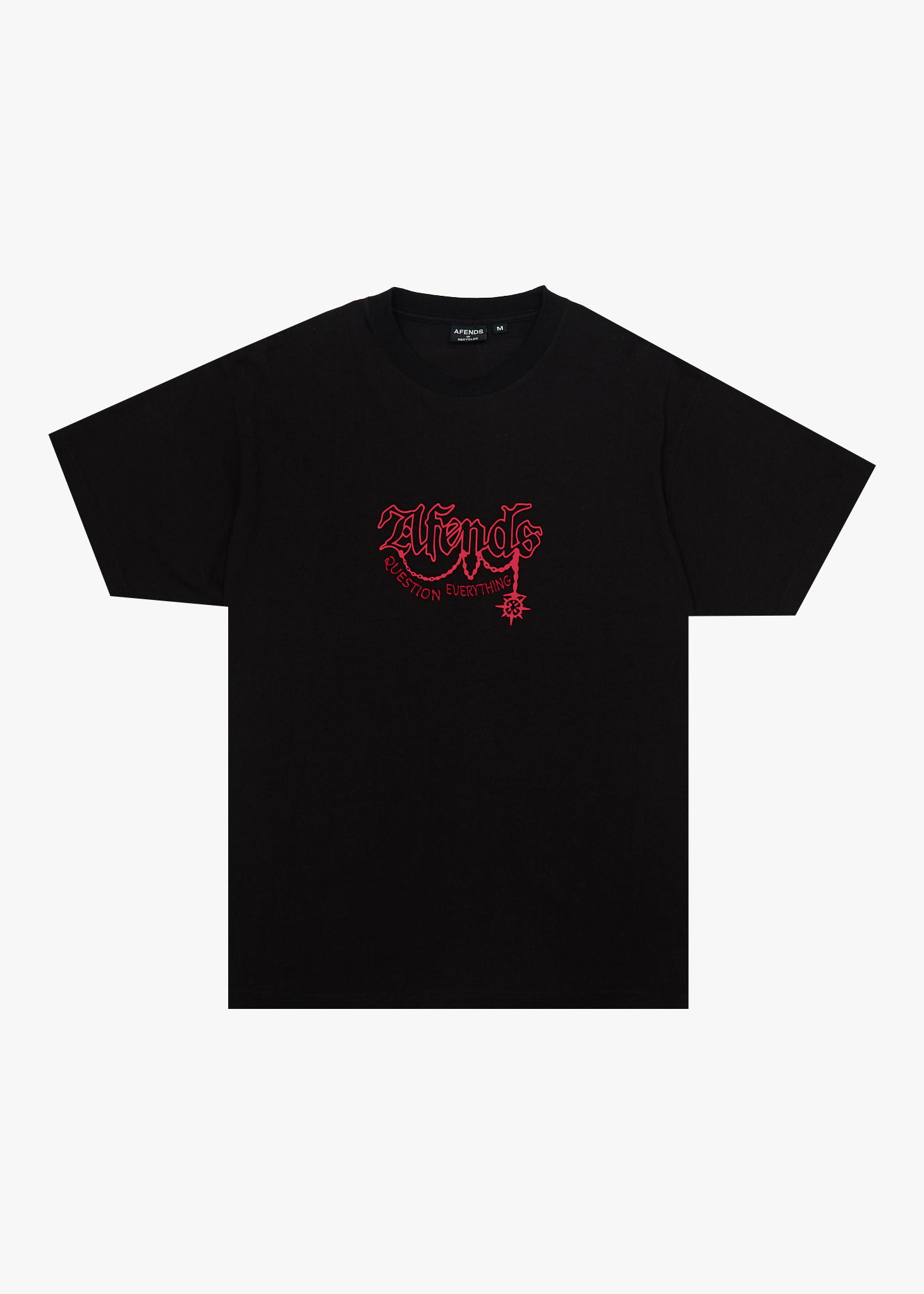 Mens boxy t-shirtSlightly cropped wider fitRibbed crew necklineHeavyweight dry hand feel blended recycled cottonFront printed and embroidered artworkSize up for an oversized fit