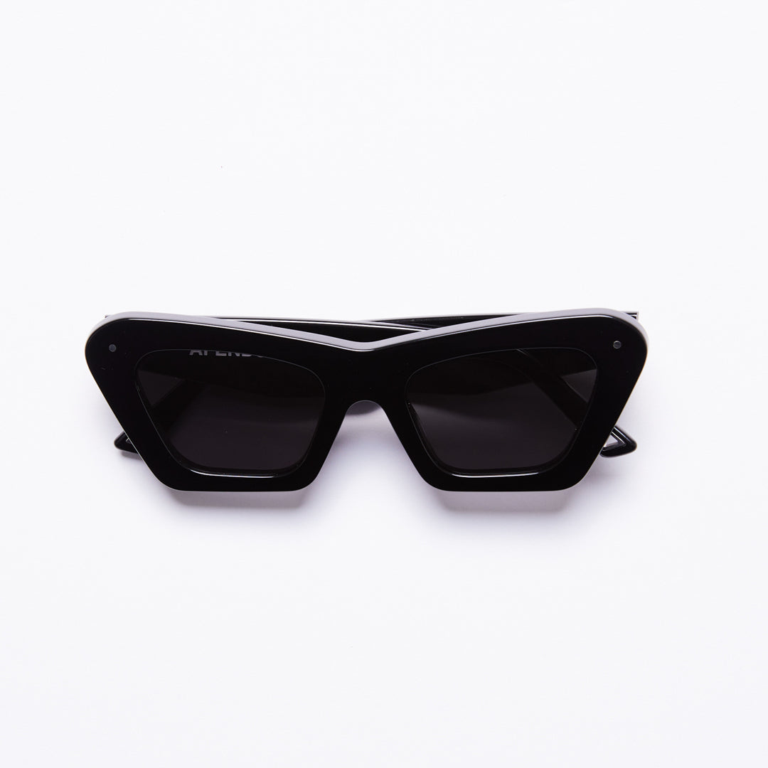 Turn heads in these sunglasses. Sundae Driver offers a bold, slightly oversized cat-eye gloss black frame and UV resistant black lenses ready for happy hour. Handcrafted in Italy from highly durable Mazzucchelli M49 Bio-Acetate, these sunglasses are leading the way in sustainable eyewear.