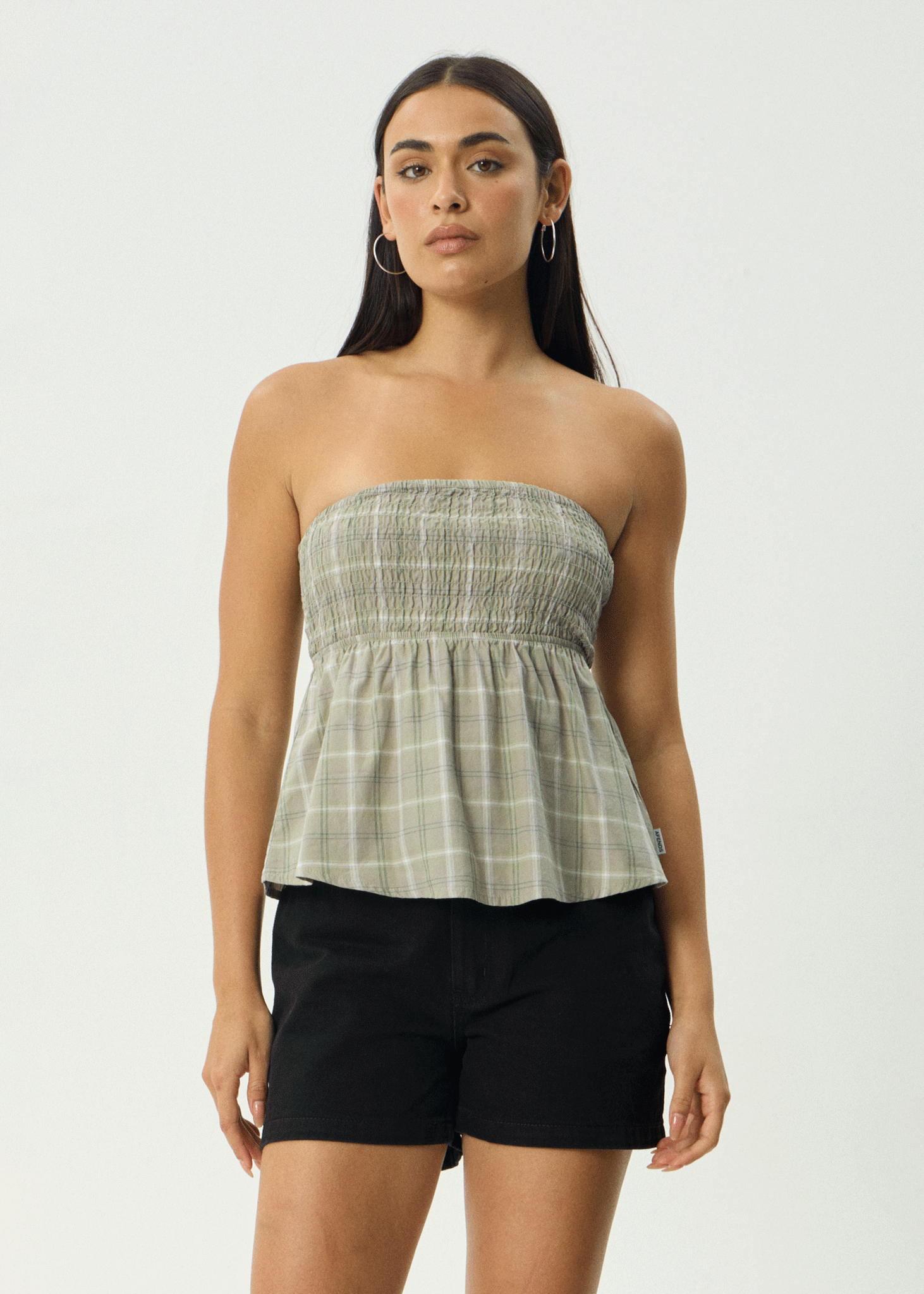 Super lightweight and breathable in 100% organic cotton, the 'Scout' collection is made for the warmer months ahead. Designed with an elasticated shirred bust panel and gathered peplum in a custom yarn dyed woven check.