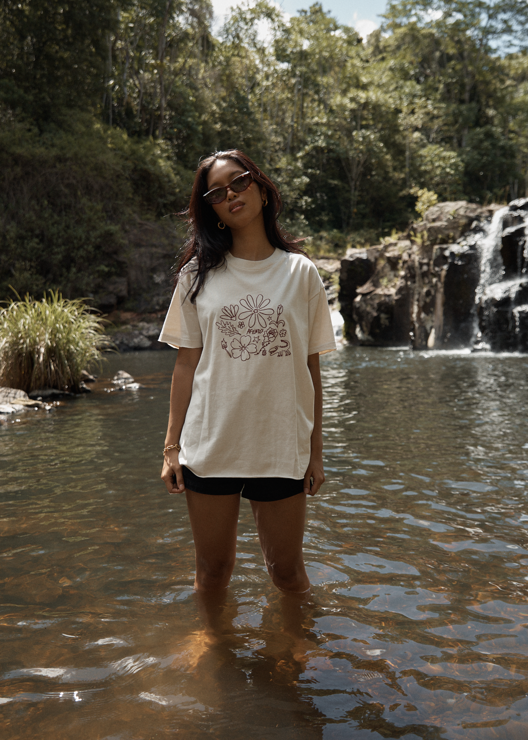 The 'Shapes' oversized tee is made from a recycled cotton blend jersey for ultimate comfort. Designed with an oversized fit, ribbed crew neckline, double raw-edge hem, and embroidered artwork.
